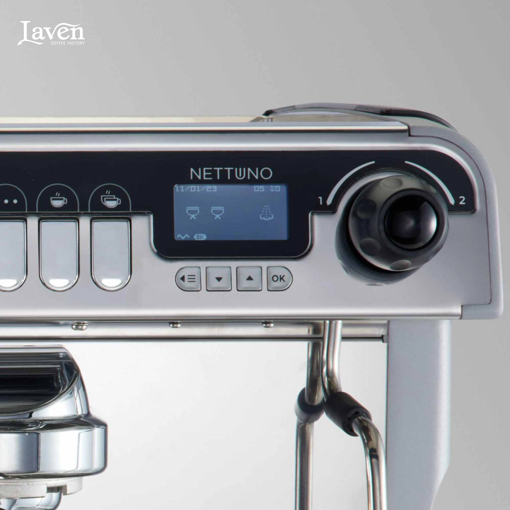 Ngay khi bước vào quán, ánh nhìn khó thể rời khỏi Nettuno A2. Thân từ thép không gỉ inox cao cấp, chống ăn mòn và chịu nhiệt cực tốt, đường nét khỏe khoắn nhưng tinh tế, cùng các nút bấm phát sáng như những viên ngọc nhỏ – tất cả tạo nên một tổng thể sang trọng và hiện đại, đậm chất Ý: thanh lịch, mạnh mẽ, và đầy cảm xúc.