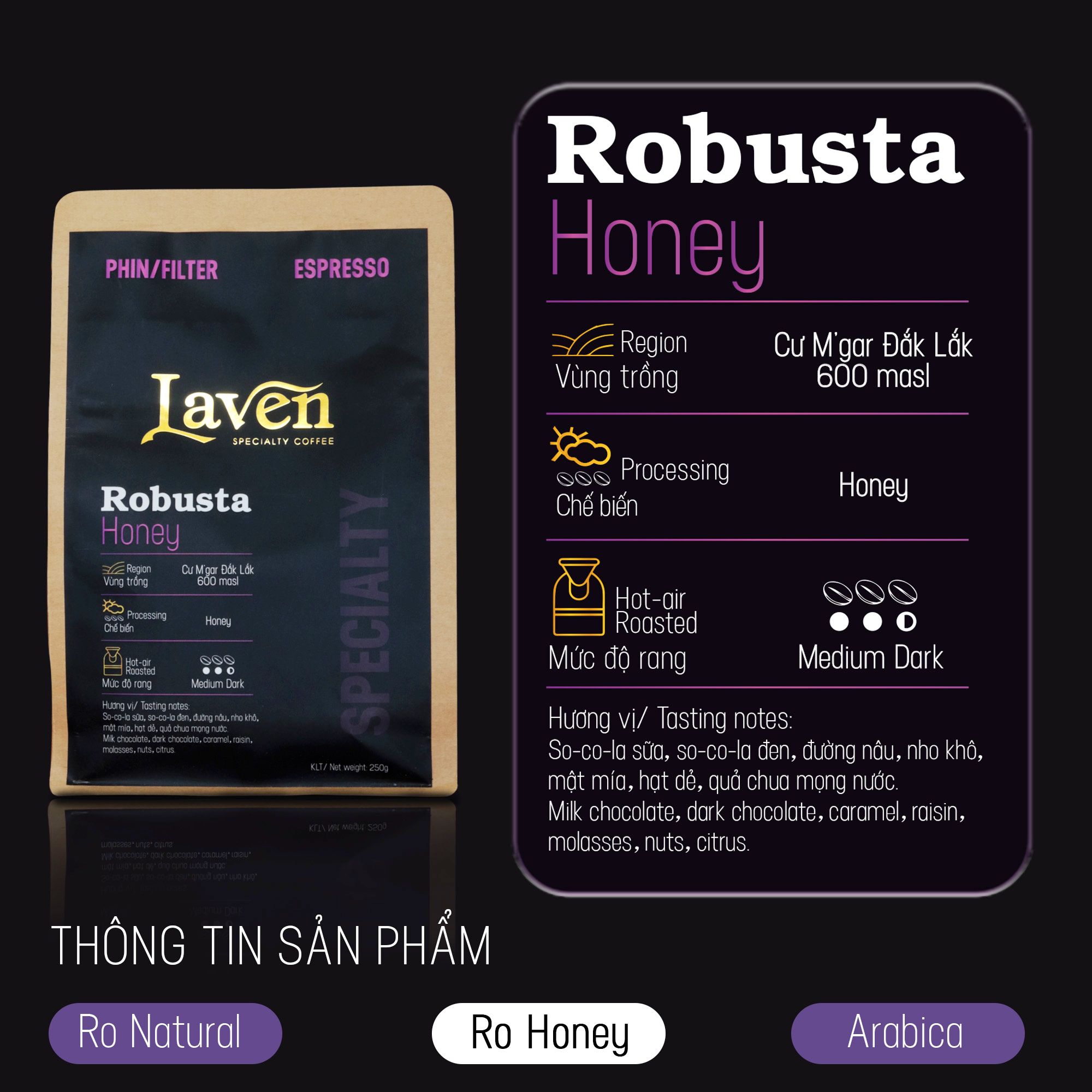 Thông tin chi tiết sản phẩm Robusta Honey - Laven Coffee